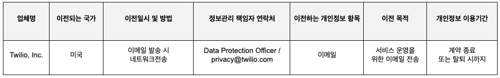 ④ 회사는 다음과 같이 개인정보 국외이전을 하고 있습니다.